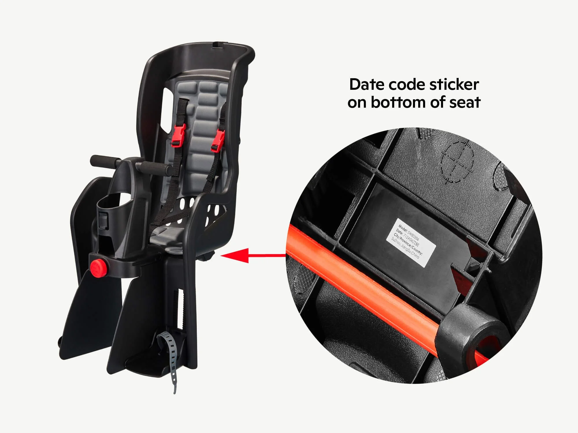 Finding your date code: The date code can be found on a small white sticker on the bottom of the seat.